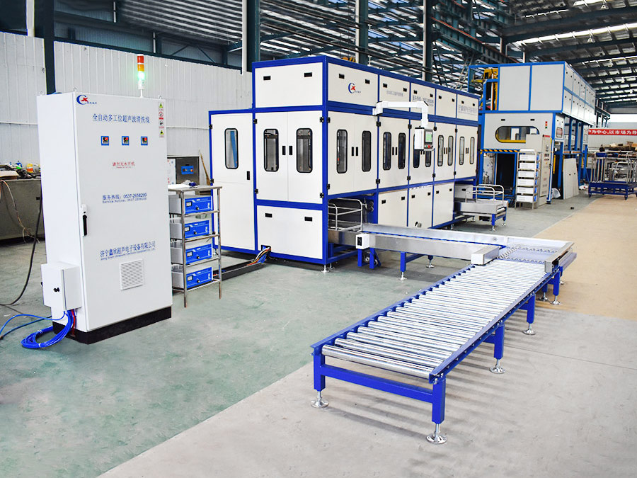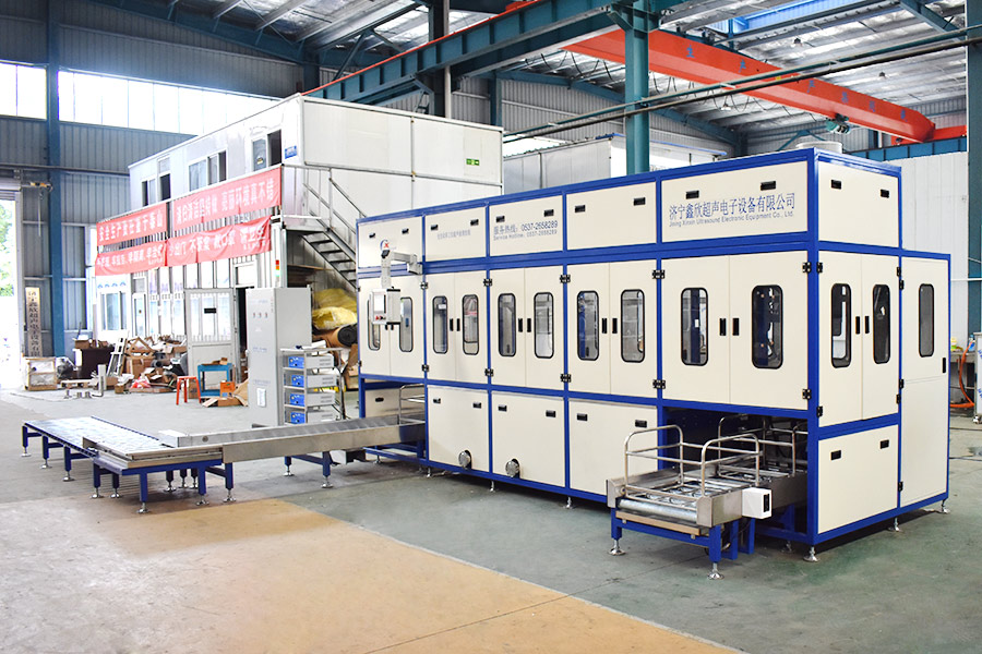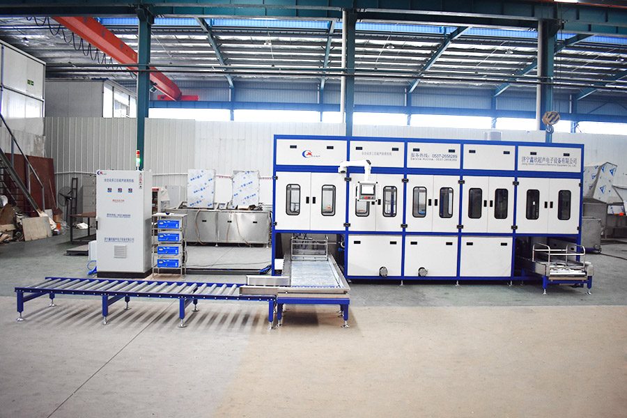 The equipment has automatic loading and unloading and corner system, ultrasonic cleaning system, automatic throwing, automatic overflow and oil separation device, spray system, automatic high-pressure water cutting system, and automatic drying system. The robot automatic conveying system adopts high-precision linear guide rails and high-precision position detection sensors, and the robot can accurately grasp and place the workpiece. The automatic feeding and discharging and automatic heating system completely realizes unmanned intervention and automatic operation, which greatly reduces the labor intensity of workers. The advanced mist treatment system can condense and return the mist generated during cleaning, and the air will be discharged after being filtered and adsorbed by activated carbon.