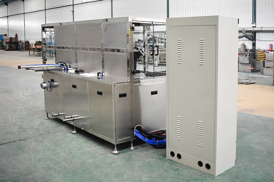 The equipment has automatic loading and unloading and corner system, ultrasonic cleaning system, automatic throwing, automatic overflow and oil separation device, spray system, automatic high-pressure water cutting system, and automatic drying system. The robot automatic conveying system uses high-precision linear guide rails with high-precision position detection sensors, and the robot can accurately grasp and place the workpiece. The automatic feeding and discharging and automatic heating system completely realizes unmanned intervention and automatic operation, which greatly reduces the labor intensity of workers. The advanced mist treatment system can condense and return the mist generated during cleaning, and the air will be discharged after being filtered and adsorbed by activated carbon.